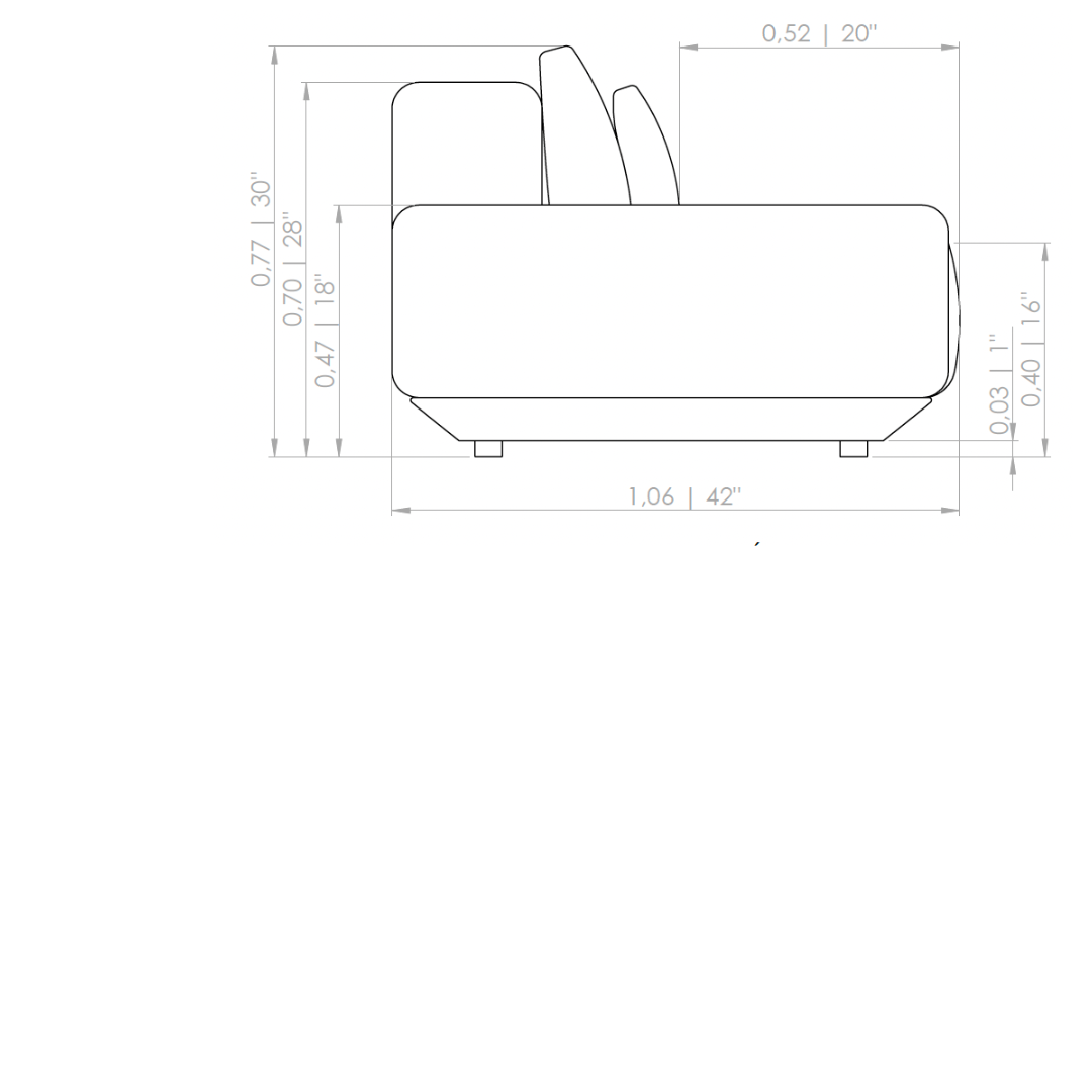 OBSERVACIONES: | EL MÓDULO DE LA CHAISE TIENE UNA COSTURA CENTRALIZADA DEBIDO A LA ANCHURA DE LA TELA. |